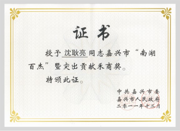 日前,第二屆嘉興市“南湖百杰”優秀人才表彰大會隆重召開,我公司董事長沈耿亮喜獲“‘南湖百杰’暨突出貢獻禾商獎”。