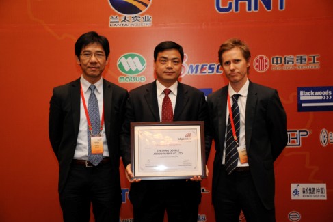 12月15日,公司副董事長、副總經理沈會民和銷售代表陳國慶受邀參加了必和必拓中國供應商答謝會及圣誕晚宴,我公司被必和必拓公司認可為“合格輸送帶供應商”。上圖為必和必拓公司代表與公司副董事長、副總經理沈會民合影留念。