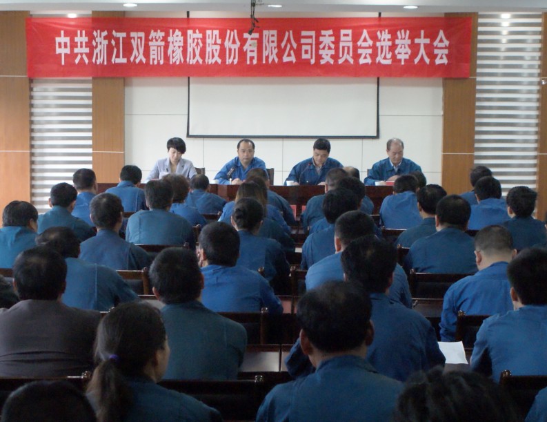 經過與會73名正式黨員公平、公正、公開的投票,大會選舉產生了沈耿亮、沈會民、尹夏青、虞炳英、沈洪發、虞炳仁、俞明松7名同志為中共浙江雙箭橡膠股份有限公司第一屆委員會委員,沈會民、沈林泉、陸新會3名同志為中共浙江雙箭橡膠股份有限公司第一屆紀律檢查委員會委員。