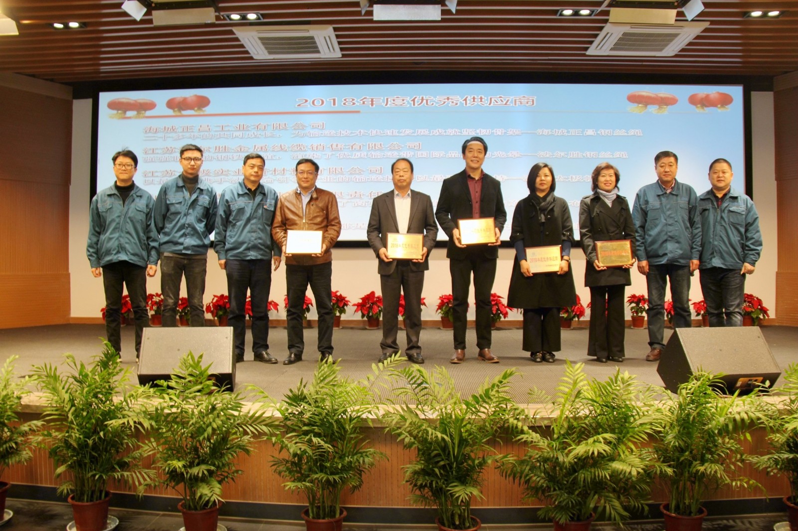 沈會民宣讀了2018年優秀供應商獲獎名單,十家企業在去年一年的綜合業績評價中脫穎而出,獲得優秀供應商稱號,公司高管為獲獎供應商代表頒發了獎牌。