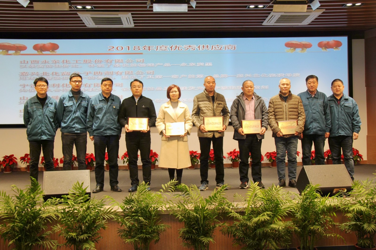 公司技術總監李平作了《原材料技術質量要求》的報告,對公司2018年的采購質量進行了分析,針對2019年的供貨質量提出了技術要求;總經理助理褚焱就2018年供應商供貨情況進行了總體回顧和說明;采購部經理揭新旗就2019年采購預定方案和招標工作進行了說明;三家優秀供應商代表分別上臺講話。